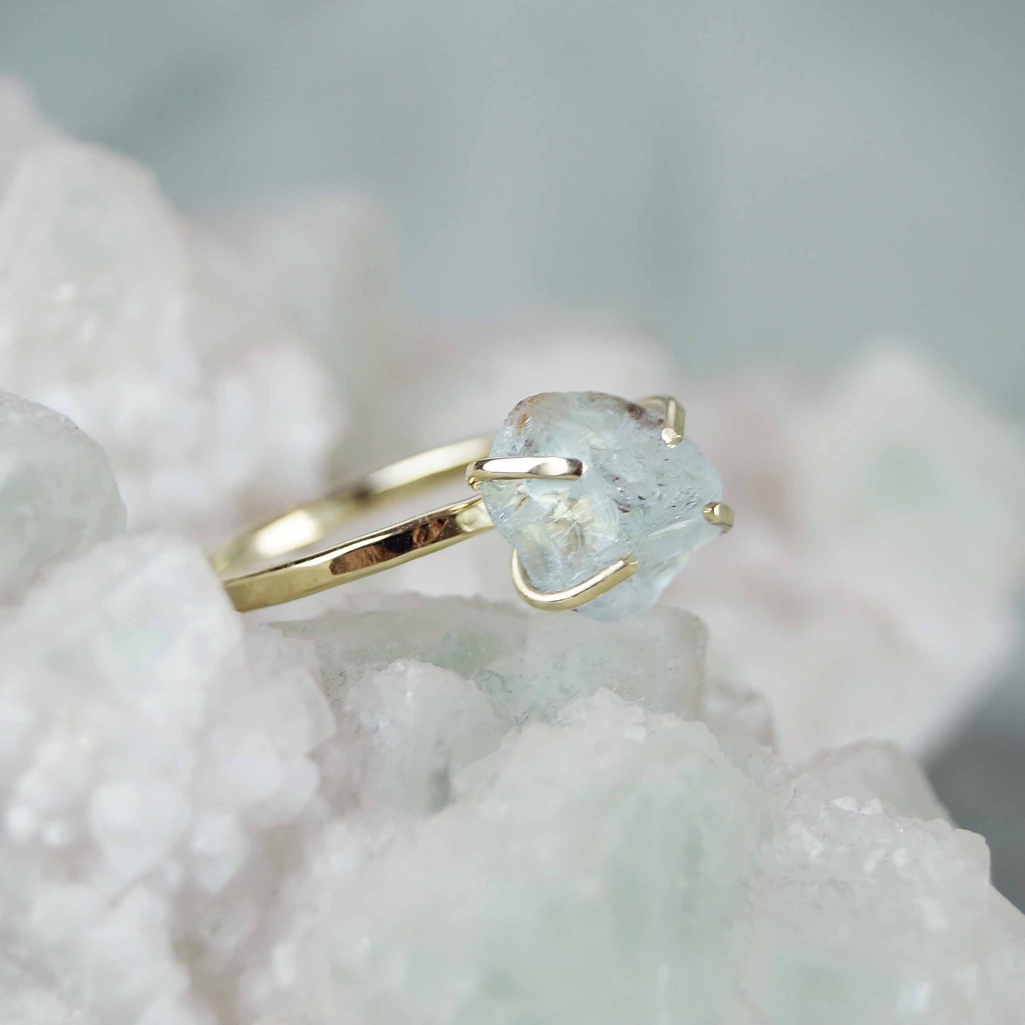 Aquamarijn ruw Ring 14kt Goud