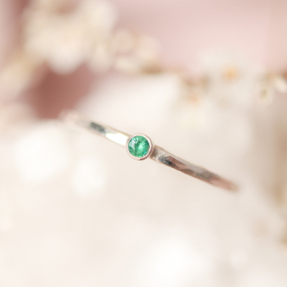 Smaragd 2mm zilver ring - geboortesteen mei